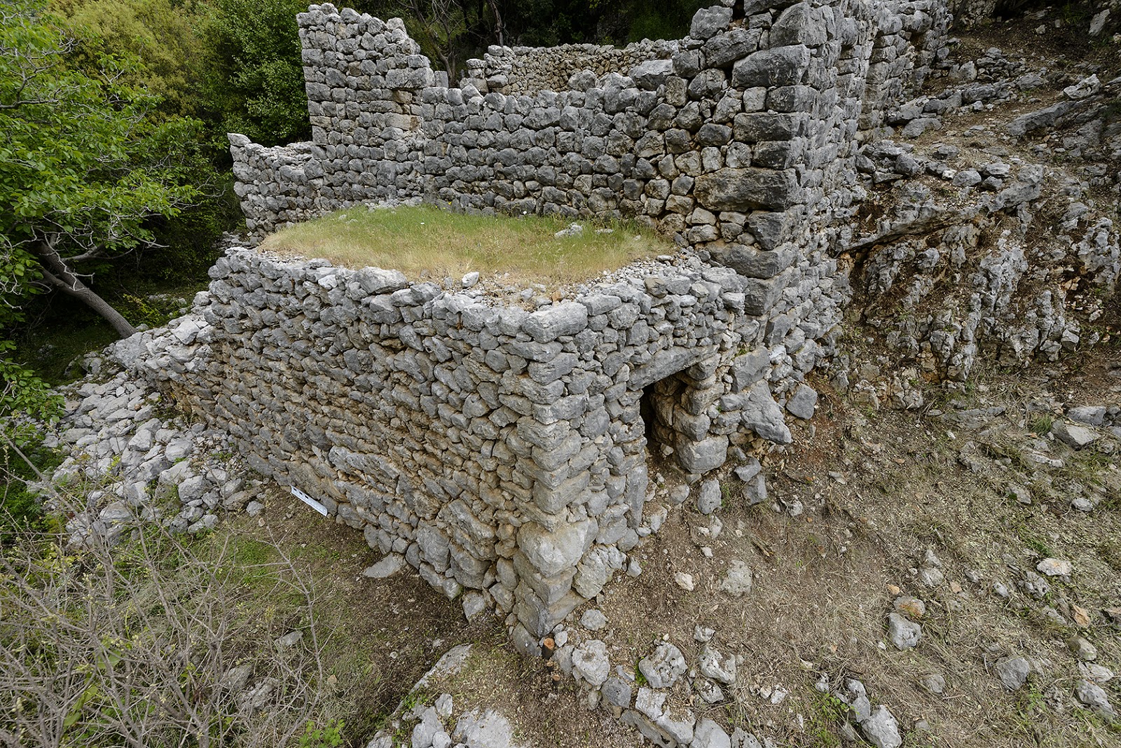 Made with local natural materials, rough-hewn stones and tree trunks, it has over two storeys; the first features a vaulted sheepfold, topped by a rectangular house with a flat earthen roof, accessible from two of its sides.